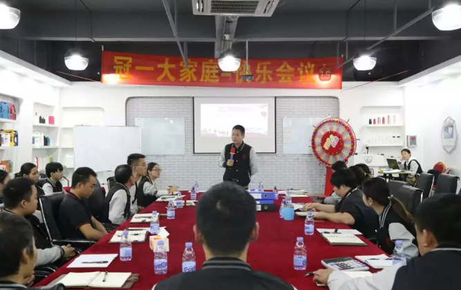 早上8:10分,管理層的30多名干部齊聚冠一公司多功能廳。
