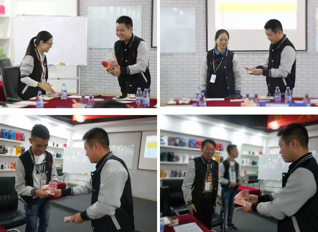 股東團隊組成了,管理層總分排名前10名現金獎勵環節也相當的火爆!落地實行了15個月的積分管理制度,鄧總現場數錢為伙伴們派發獎金,發錢發到滿面春風,數錢數到手抽筋,讓積極的人更積極,讓優秀的人有獎勵。瞧這些可愛的伙伴們,一個個喜笑顏開的~
