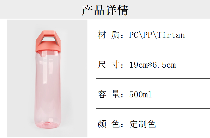 產品特點:PC/PP材質,500MLDD容量,顏色可定制,