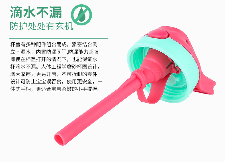 產品特點:鴨嘴式兒童吸管塑料杯,防漏防溢,安全材質,一鍵喝水,5OOML容量,多種顏色選擇,寬口吸嘴喝水更流暢